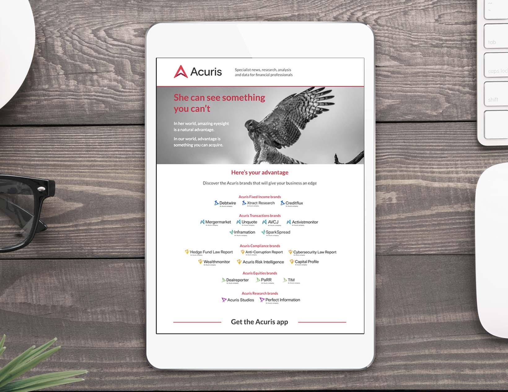 Acuris Landing page Waterlock Product video Q Acoustics Product range brochure QED Supremus Product launch Debtwire Par Printed advertisement Inframation Advertising campaign The Arrow Game Gaming App geo (Green Energy Options) Brand refresh